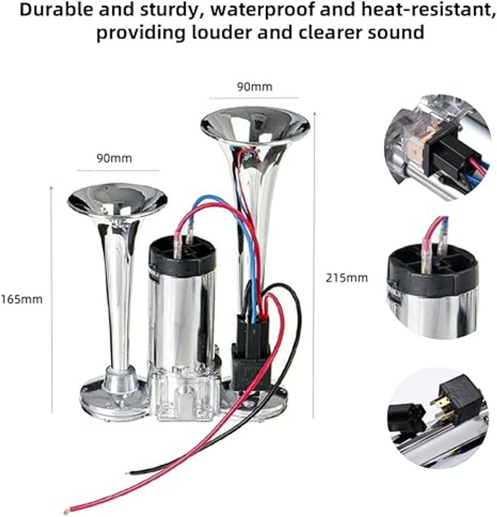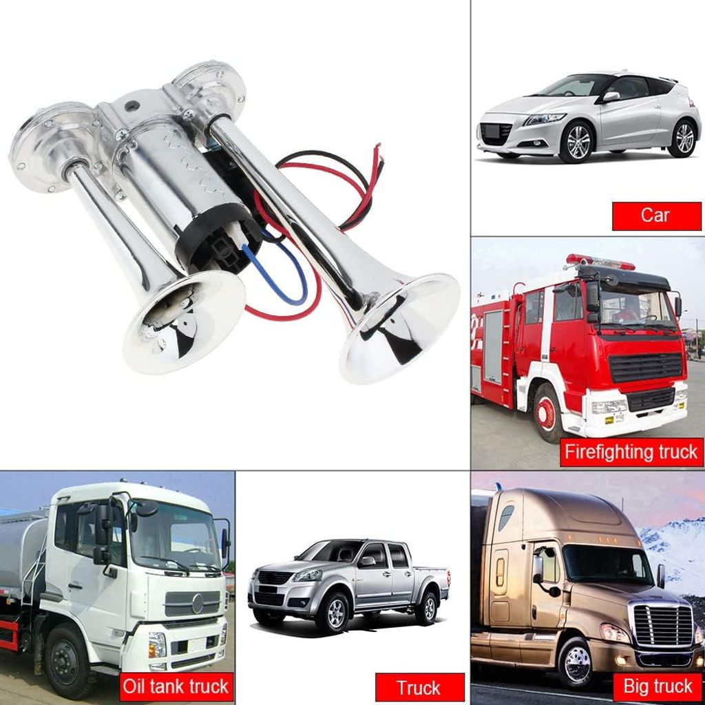 【Fit 12 Volt Vehicle】The air horn kit is suitable for Any 12V vehicles, can be used for SUV, motorcycle, yacht, boat, off-road vehicle, bus, train, etc.