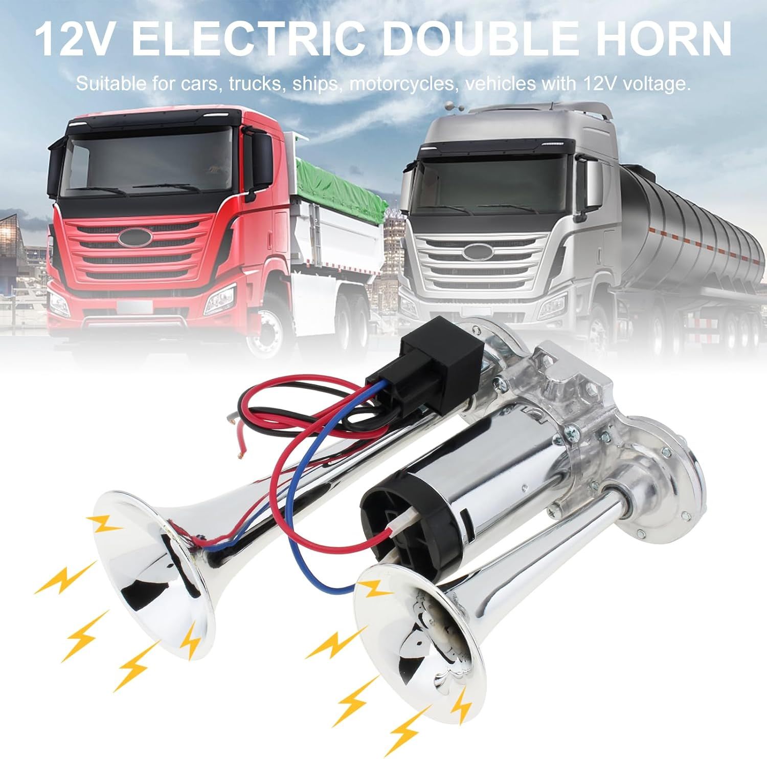 12V Air Horn for Truck, 150dB Dual Trumpets Super Loud Electric Car Air Horn Kit with Compressor for Cars Trucks Lorry Trains Boats